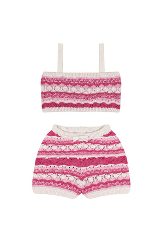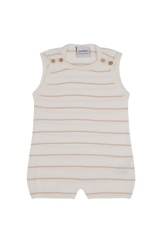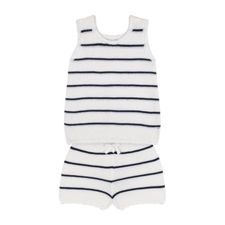 Bej Çizgili Triko Şortlu Set