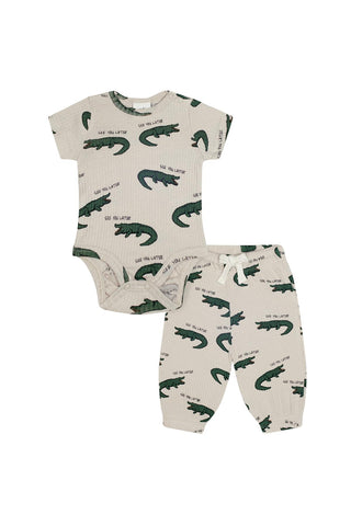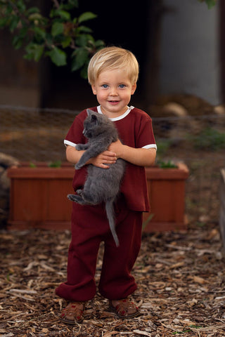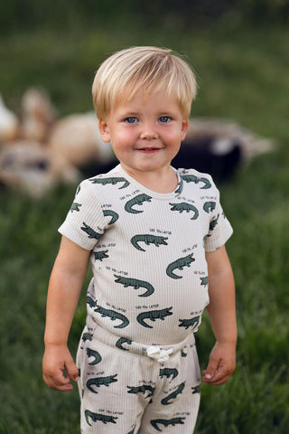 Beyaz Detaylı Kiremit Waffle Kısa Kollu Set