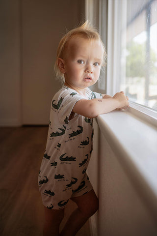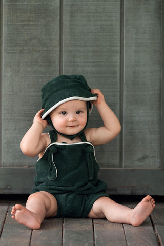 Beyaz Kontrast Detaylı Yeşil Havlu Şortlu Salopet