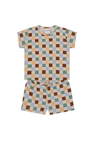 Pastel Damalar Kısa Kollu Tshirt Şort Set